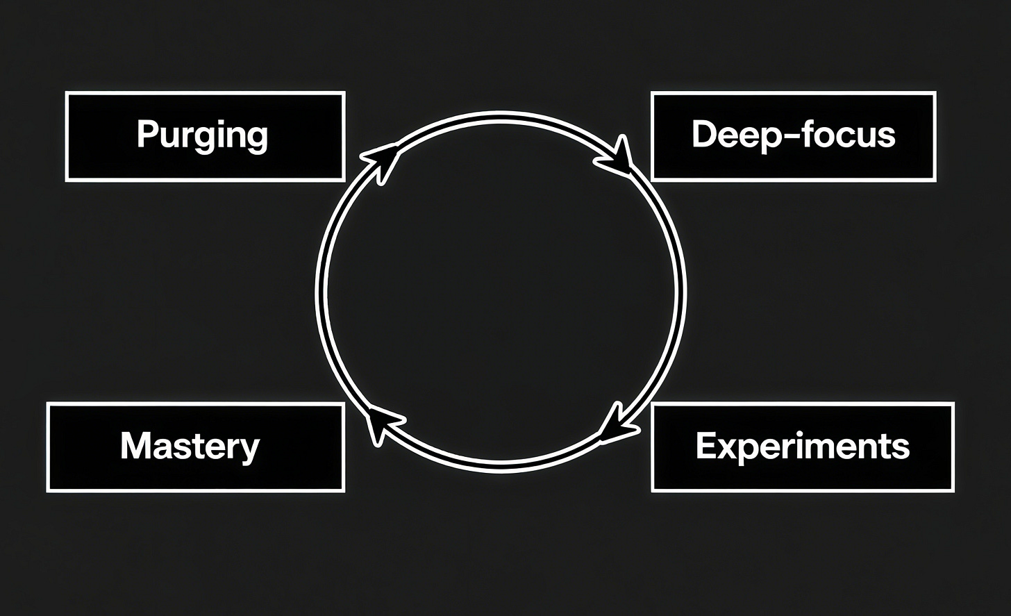 This stage is messy. Most experiments fail. 99% even. But every failure is data. You learn what works, what doesn’t, and — most importantly — what feels right to you. Sometimes the noise shows you what you don’t need anymore. Sometimes you realize you cut something you actually wanted.